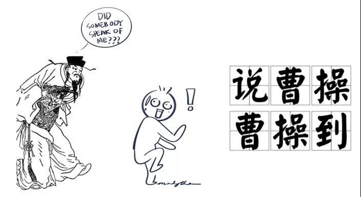 You must have heard the English saying "Speak of the devil", but what is its Chinese equivalent? It is "说曹操,曹操到 (Shuō Cáo Cāo, Cáo Cāo dào)" in Chinese.